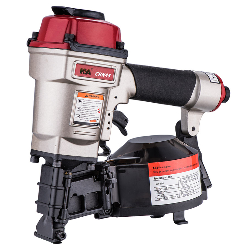 KYA Fasteners , 'n 20+ jaar fabriek , vervaardig die CRN45 pneumatiese spoel dakspyker vir asfalt gordelroos, isolasie planke, vesel sement sylyn . Ultra-ligte aluminium liggaam (2.58kg) , 120-spyker magasyn , dryf 3/4'–1¾'' x 1¾'' draad met 1 1¾'' 115 spoel draad. . Bostitch RN46, Hitachi NV45AB2, Senco 455XP, Max CN445R2 Uitgevoer na die VSA, Kanada, die Verenigde Koninkryk, Australië en 50+ lande.