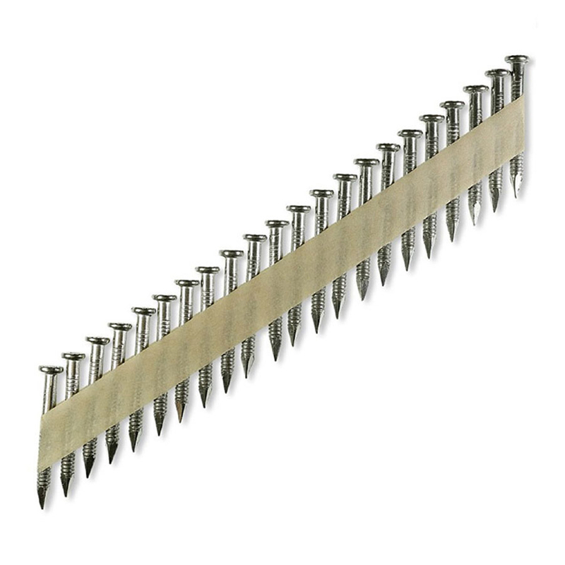 KYA Fasteners-ի 34 աստիճանի չժանգոտվող պողպատից պատրաստված թղթի կաղապարով հյուսված կախիչի եղունգները նախագծված են ճարմանդների կախիչների, սեյսմիկ և փոթորիկ կապանքների, խարիսխների և միացնող ժապավենների անվտանգ տեղադրման համար: Պատրաստված է 304 չժանգոտվող պողպատից՝ այս մեխերը բարձր կոռոզիոն դիմադրություն են տալիս, իդեալական կոշտ և աղի ջրային միջավայրերի համար: 3,33 մմ (0,121 '), 3,76 մմ (0,148 ') կամ 4,10 մմ (0,161 ') տրամագծերով և 32 մմ-ից մինչև 64 մմ երկարություններով, նրանք ունեն բարձր ճեղքման ուժ՝ դիմակայելու փոթորկի հետևանքով առաջացած ուժերին: 34 աստիճանի թղթի ժապավենը, ինչպես նաև ENCO-ի պես սնուցող ժապավենը: PASLODE, մինչդեռ գլխի վրա դրոշմելու օժանդակ միջոցները: